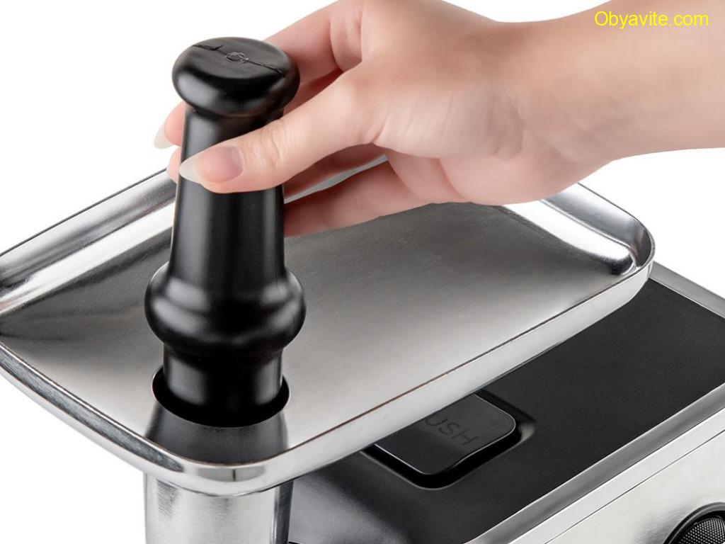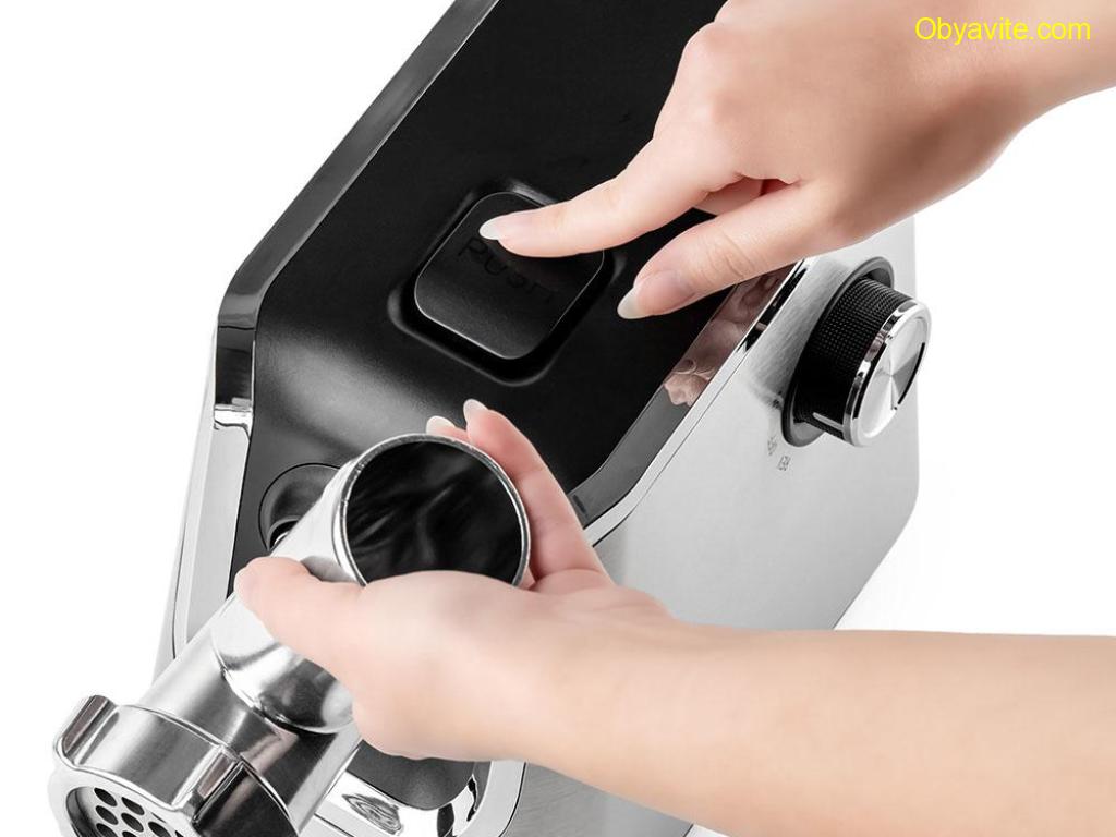 Месомелачка Капацитет за работа: 2 кг/мин Приставка за доматен сок Приставка за колбаси Нож от неръждаема стомана Приставка за притискане на месото 2 размера на ножовете – 5 мм средно смилане, 7 мм едро смилане Ниво на шум: ≤85 dB (A) Бутон с 4 функции – Вкл./Изкл., Превъртане напред и назад Бутон за освобождаване Корпус от висококачествена пластмаса с декорация от неръждаема стомана Приставка за мелене и шнек от алуминий Тавичка за месото от неръждаема стомана Място за съхранение на ножовете Дължина на кабела 110см Номинална/Максимална мощност: 600W/1800W 1800W, 220-240V/ 50-60Hz