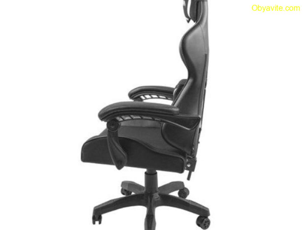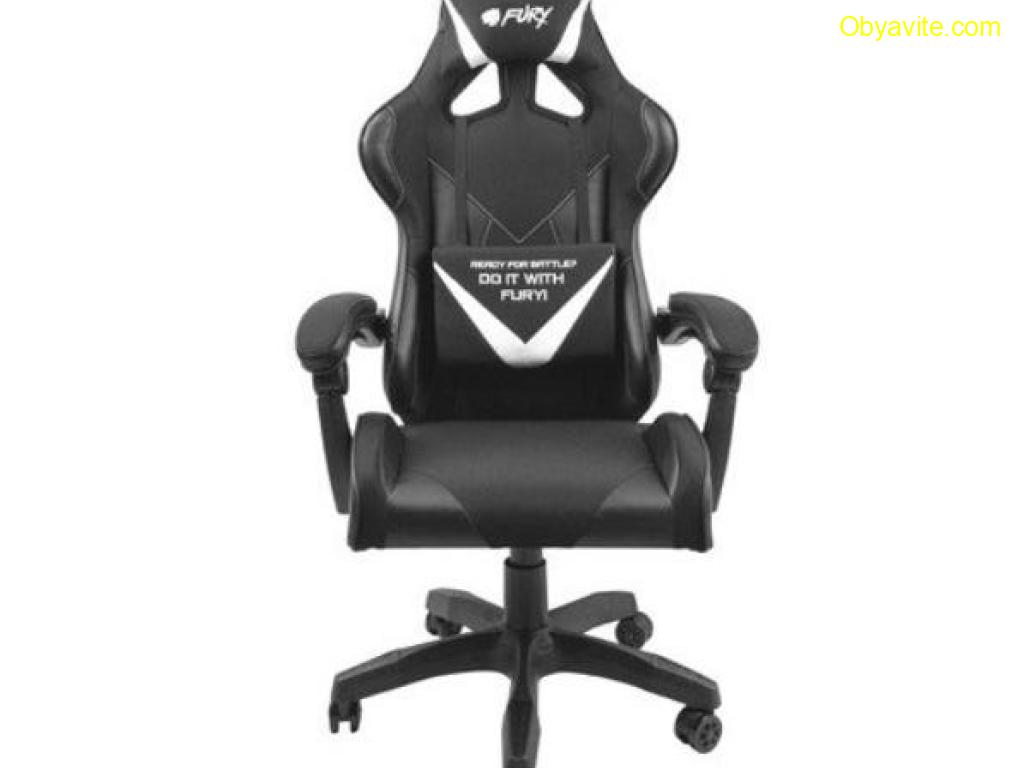 Геймърският стол Fury Avenger L е перфектната комбинация от ненадминат комфорт и изключителна структурна издръжливост. Той има ергономична конструкция, която осигурява правилно разпределение на вашето тегло по време на игра и издържа до 150 кг. Седалката на стола е направена от висококачествен материал, който ви гарантира оптимална въздушна циркулация, която ще повиши комфорта ви по време на интензивни гейминг битки значително. Столът разполага с мека пяна, която прави облегалката му по-гъвкава и мека. Динамичният спортен силует на стола ще вдигне гейминг изживяването ви на едно ново ниво. Освен това иновативната му форма и дълбокият му черен цвят с бели акценти ще допринесе за гейминг стила ви. Fury Avenger L има горна и долна възглавница. Долната възглавница поддържа лумбалната зона на гръбначния ви стълб, а горната възглавница се грижи за комфорта ви и правилната ви поза по време на игра. Подлакътниците на стола имат удобна и мека подплата, която поддържа раменете ви в удобна позиция по време на дългите ви гейминг маратони. Освен това може да регулирате позицията на подлакътниците и на облегалката, така че да прилягат максимално към формата на тялото ви. Fury Avenger има специални гумирани колелца, които ви гарантират максимална подвижност без притеснение от надраскване на пода. Този стол разполага с издръжлив механизъм, който ви позволява да регулирате височината на седалката, спрямо бюрото си и личната ви височина.